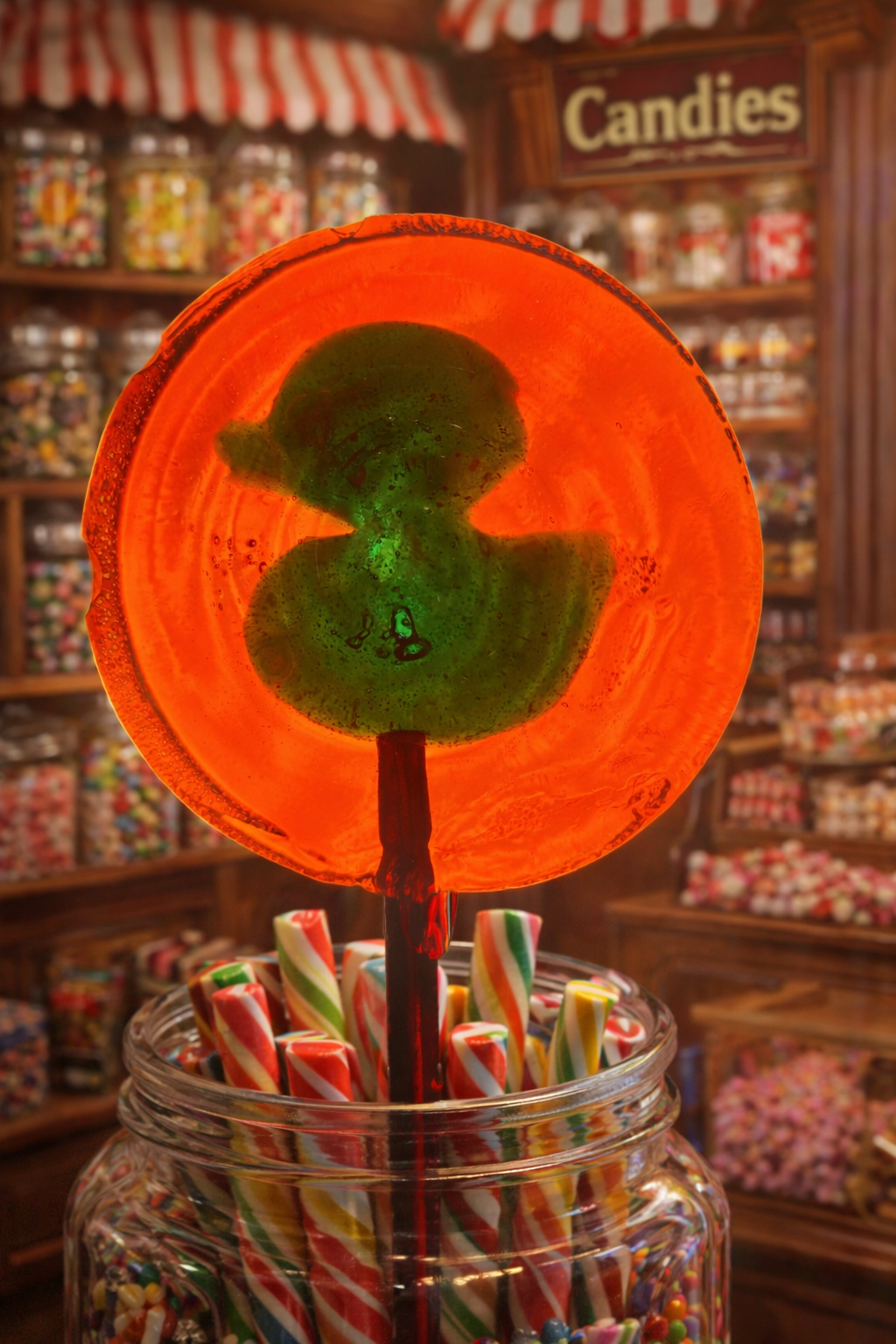 Each Duck Pop starts with a traditional round hard-candy pop, a bit larger than a silver dollar, poured just right for a slow, satisfying melt. At the center? A Duck Drop—our signature duck-shaped hard candy—nestled right inside, bringing a second, complementary flavor that reveals itself as you go.